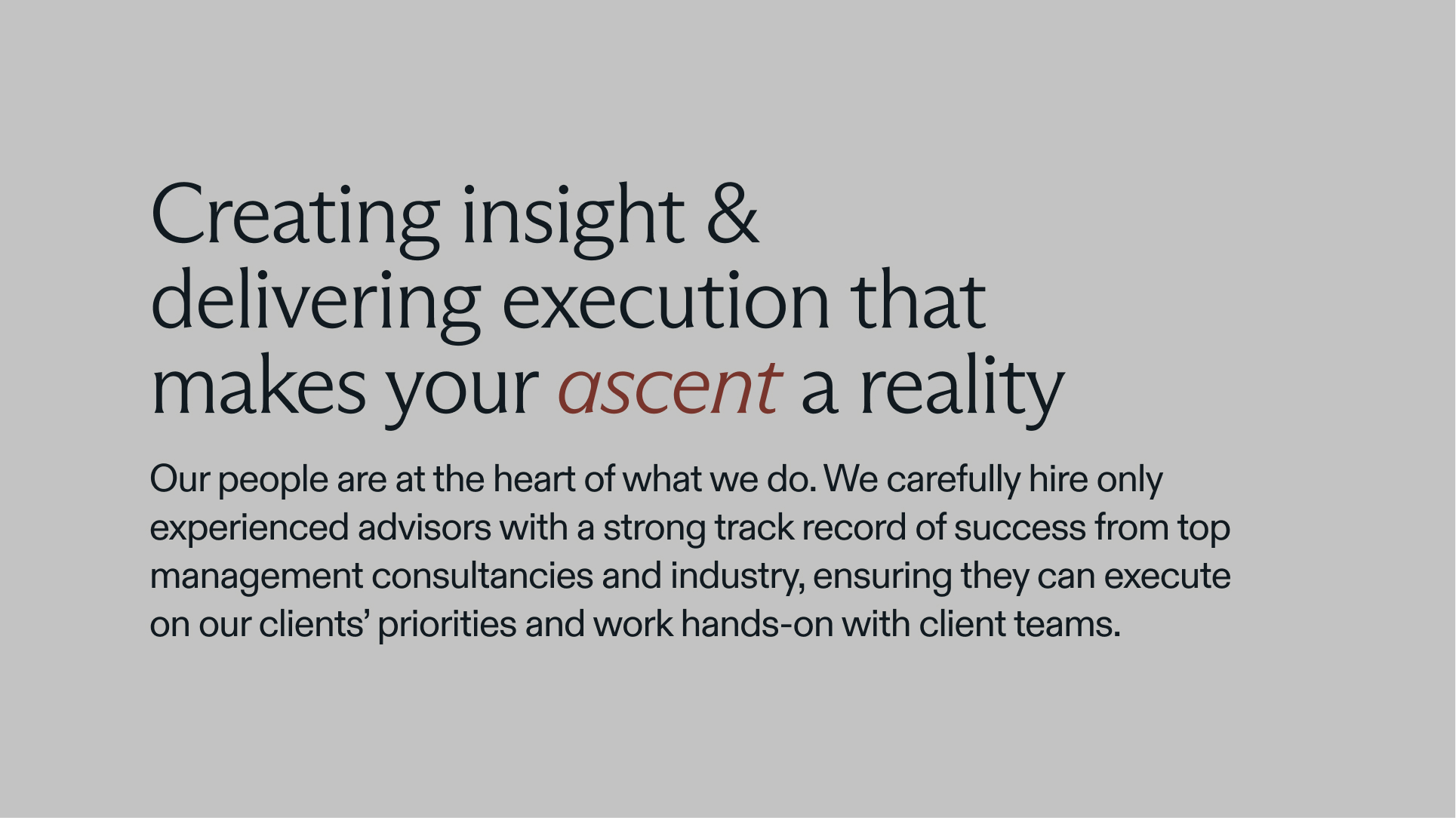 Ascando Partners uses a typography system designed to balance character and clarity. Our primary typeface, Arizona Flare, was chosen for its refined serif details and contemporary structure. It brings just enough personality and authority to signal experience and credibility, while remaining clean and restrained enough to feel modern and precise. This balance reflects who we are as a consultancy: thoughtful, structured, and forward-looking, without feeling distant or academic.